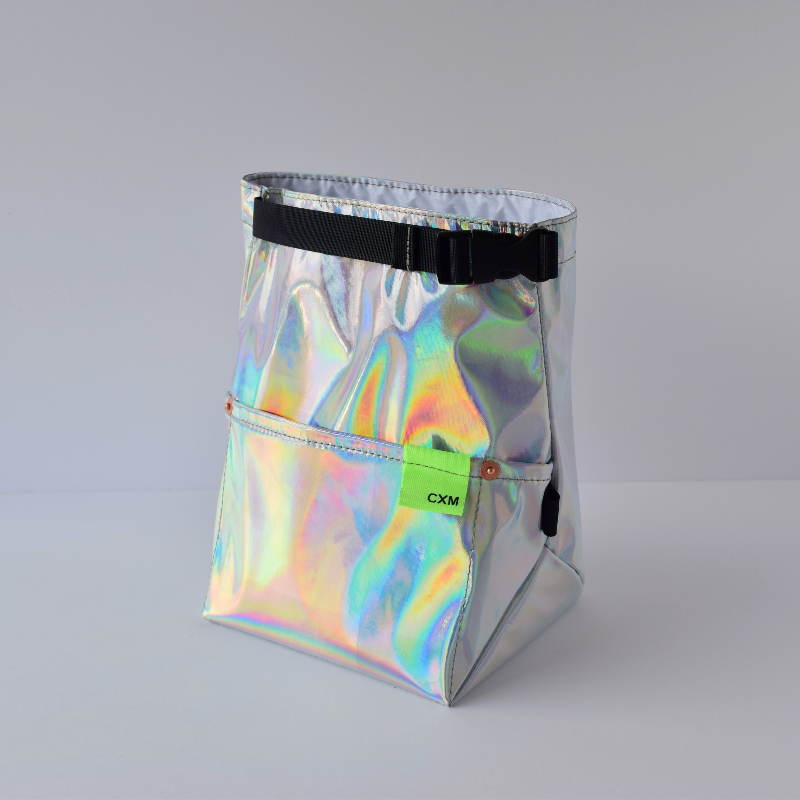 The bottom fabric is doubled and the center of gravity is placed at the bottom to prevent the chalk bag from tipping over. It becomes more stable by putting something in it.