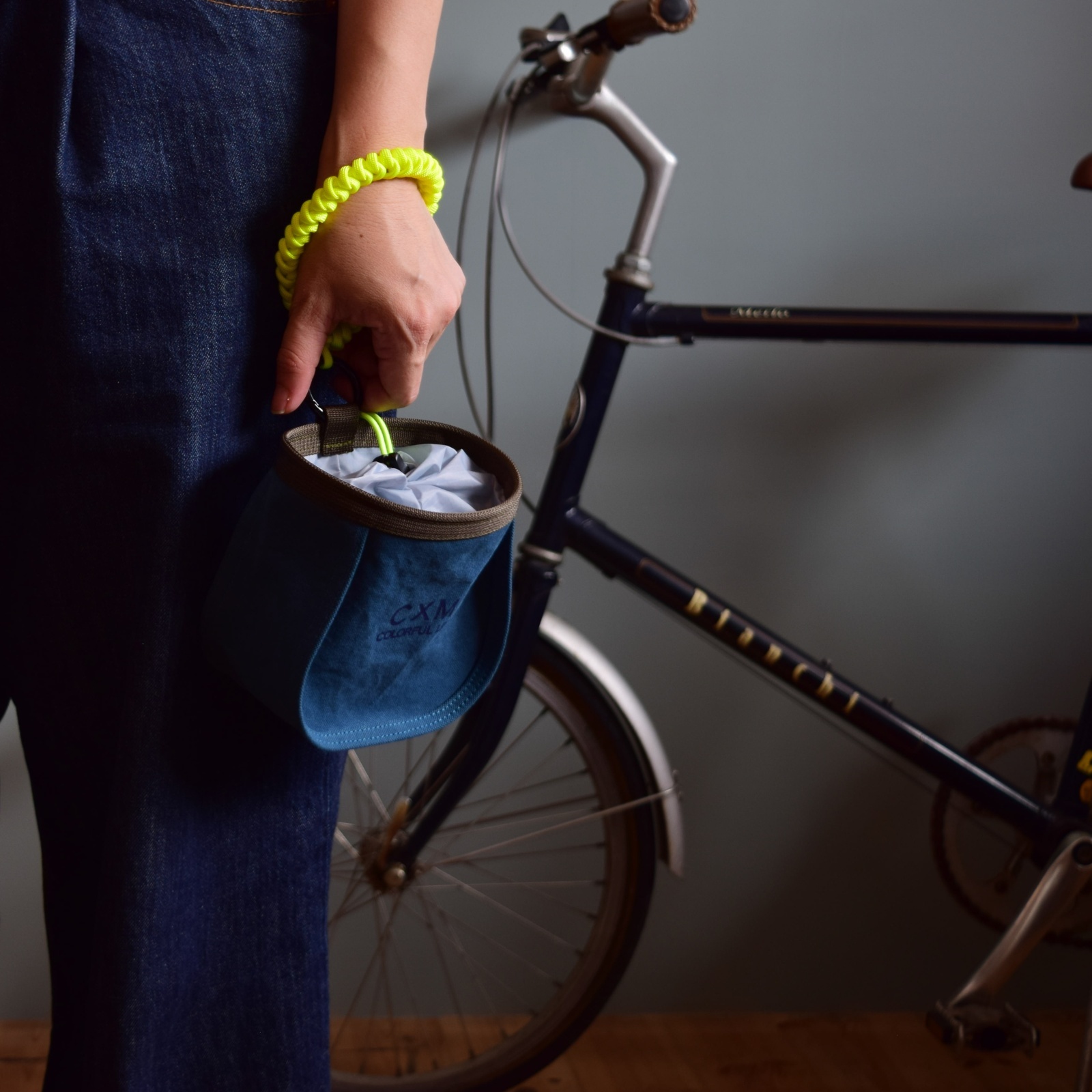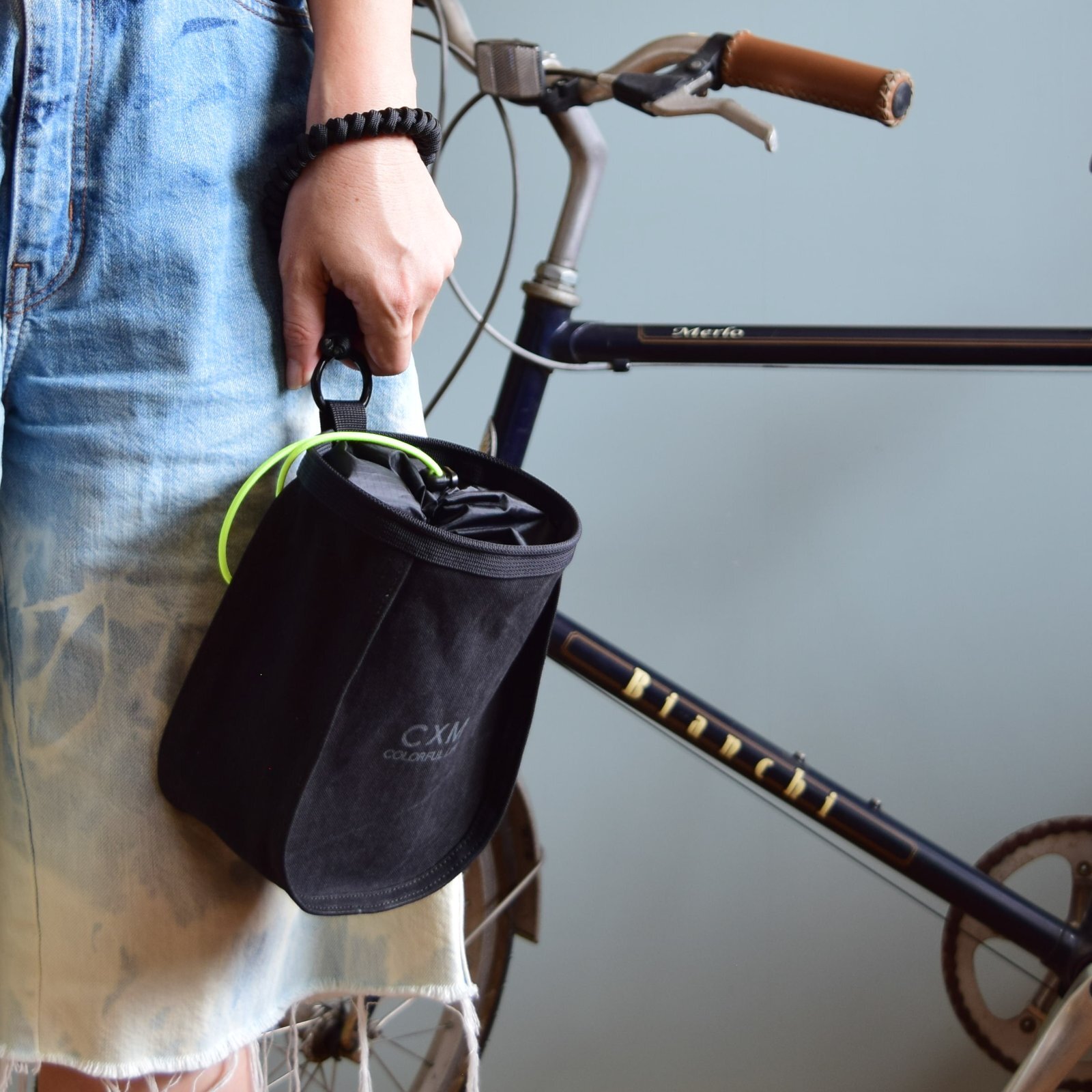 Based on CXM’s popular chalk bag “BELL BAG,” known for its distinctive form, we have turned it into a stem bag that can be attached to bicycle handlebars.